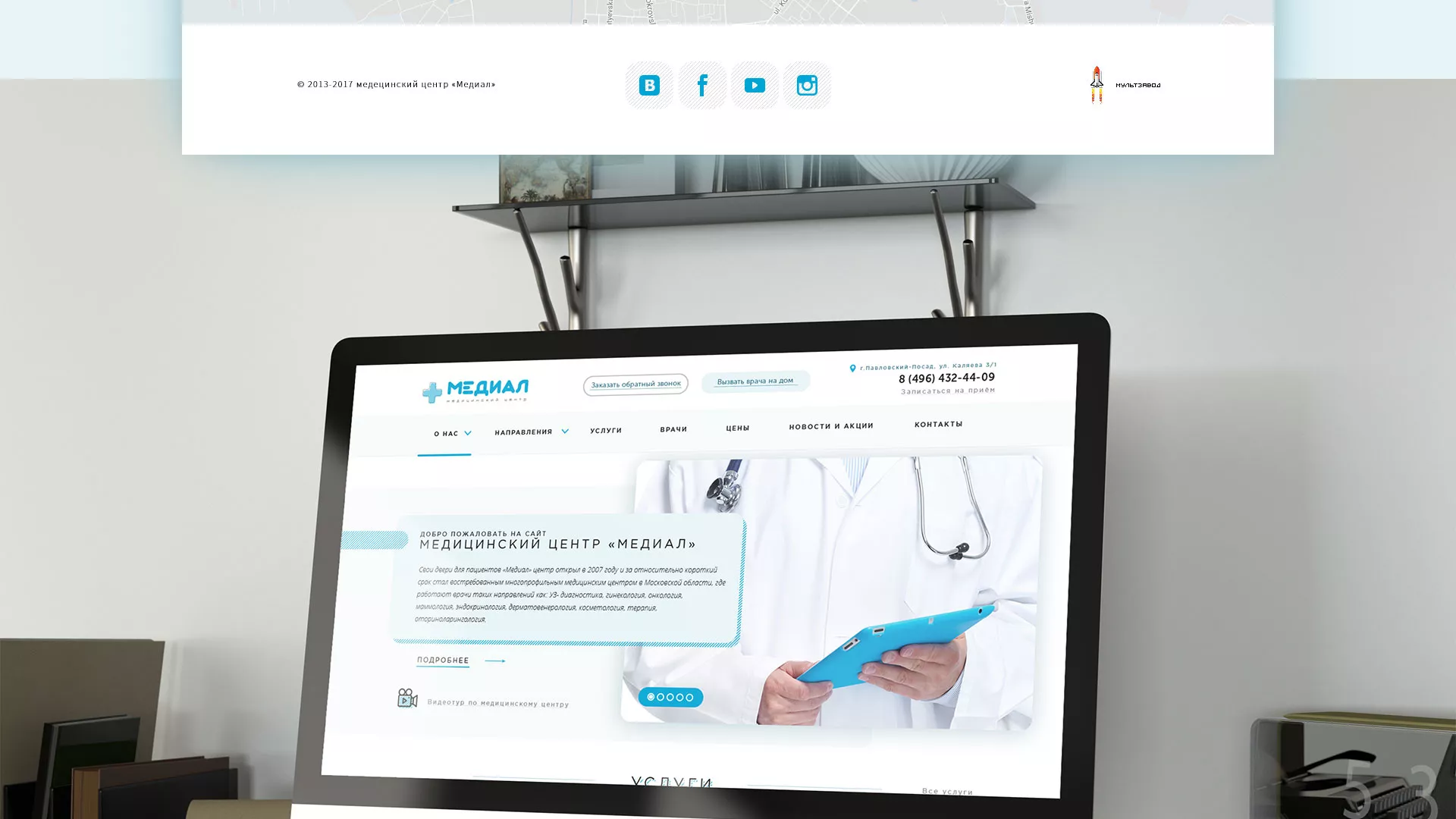 Сайт медцентра «Медиал» в Петрозаводске является «лицом» учреждения, презентует его с лучших сторон, доступно информирует об оказываемых услугах. Он легкий в навигации и использовании. На таком сайте должно быть просто узнать о врачах, услугах, записаться на прием всем возрастным категориям, от 16 до 60 лет. Это должен быть современный, функциональный и эстетически приятный сайт. В рамках создания сайта для медицинского центра компания «Мультзавод» в Петрозаводске ориентируется именно на эту задачу.